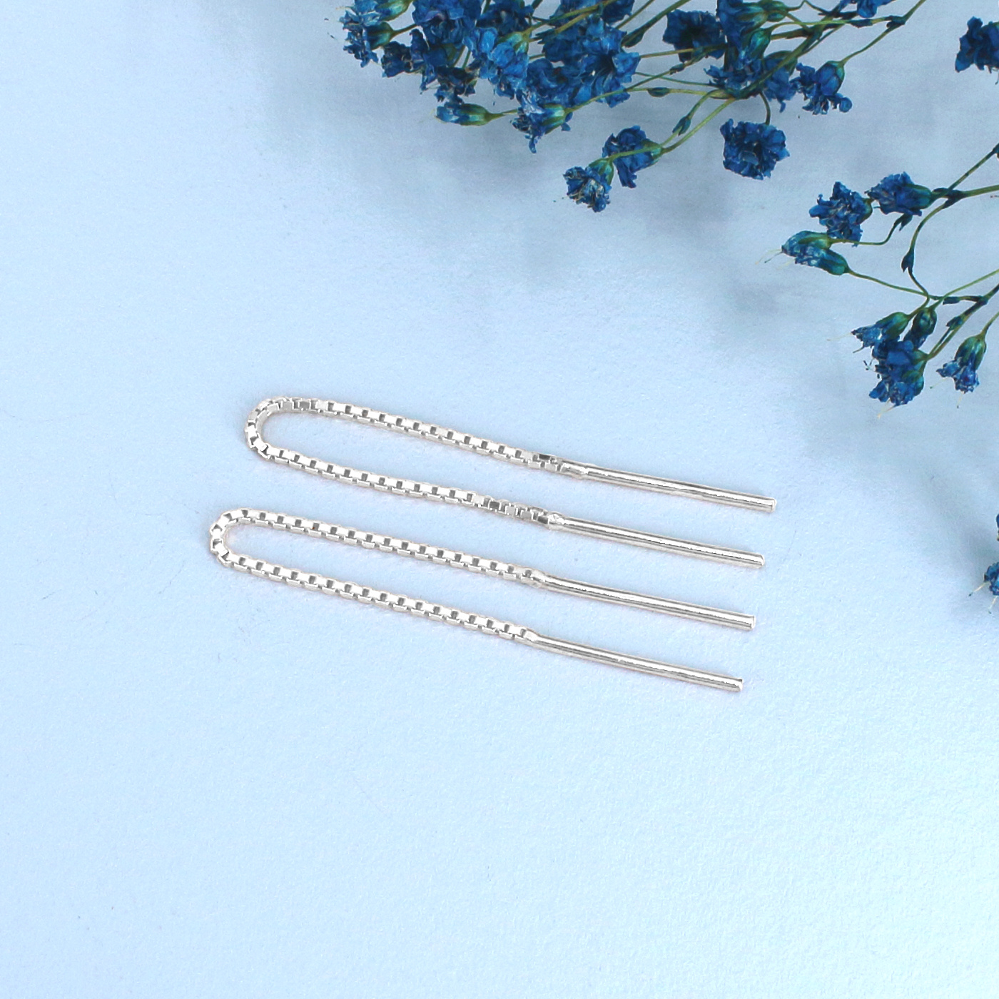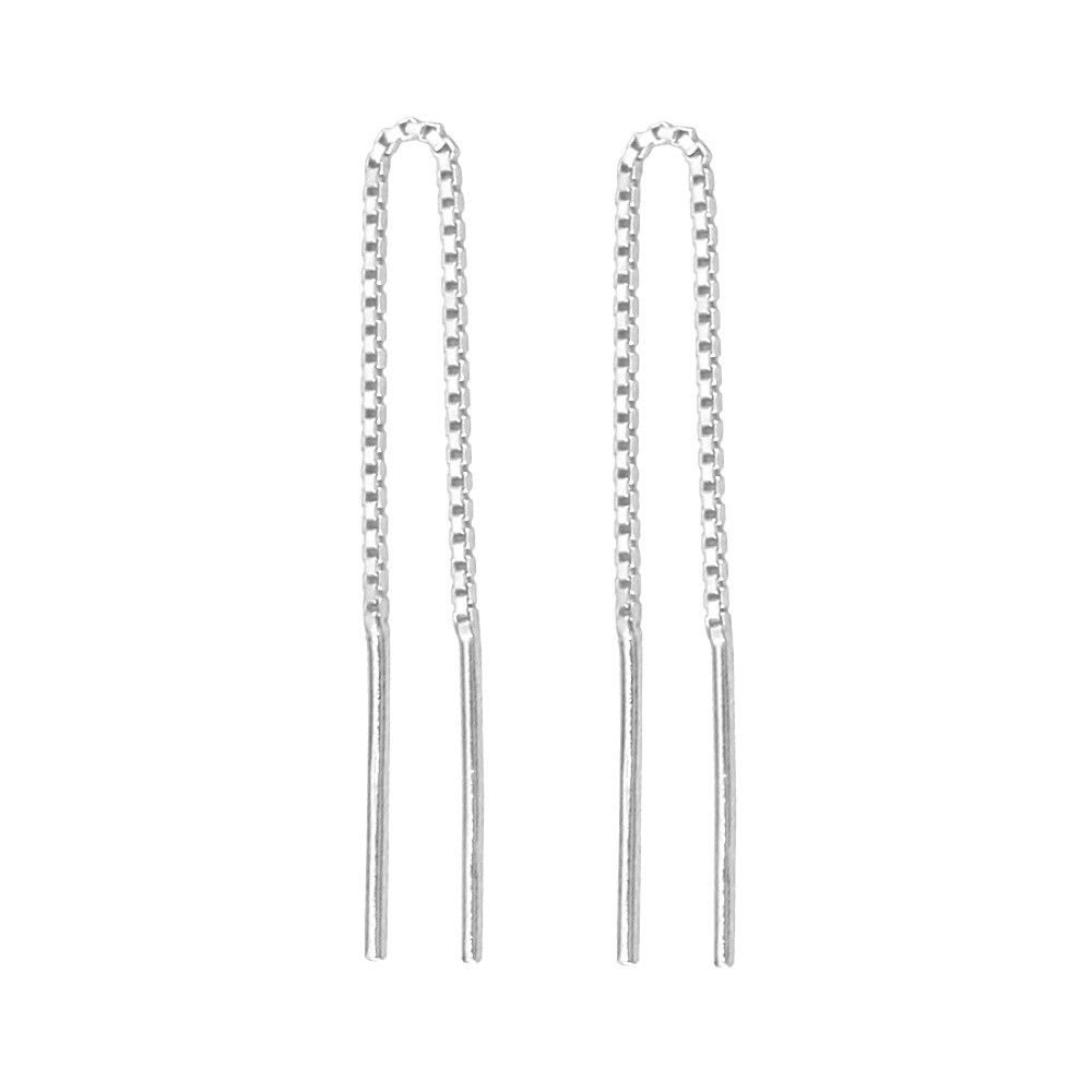 Schicke und elegante Sterling Silber durchzieher Ohrringe mit Quadratkette sind zeitlos und ein Muss für jede Schmucksammlung. Die Ohrringe werden in einer matten schwarzen Schmuckschatulle in kostenloser Geschenkverpakkung verschickt.