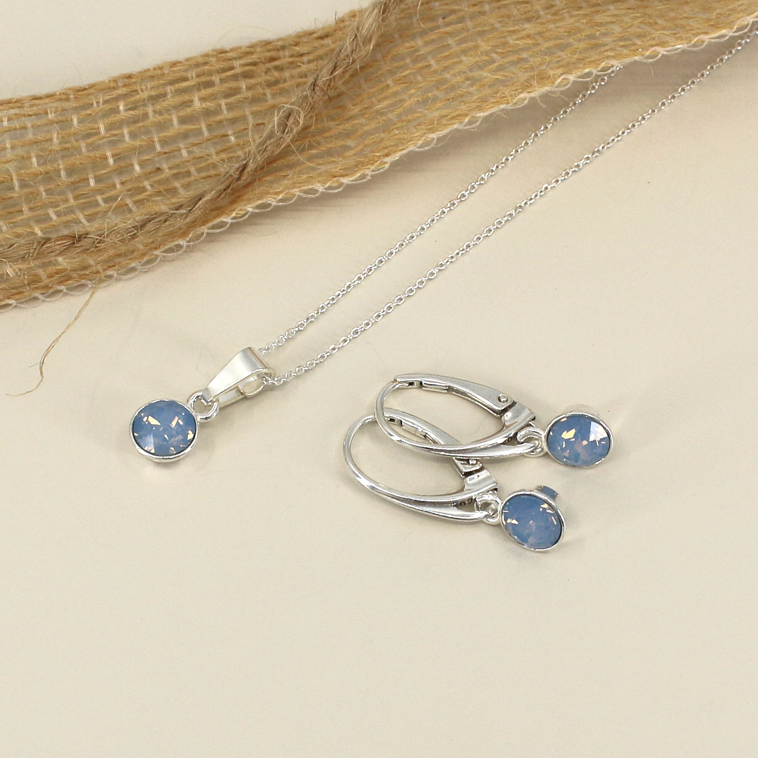 Elegante klassische Sterling Silber Halskette mit einem kleinen opalblauen Swarovski Kristall in einem massiven Sterling Silber Anhänger sind zeitlos und ein perfektes Geschenk für sich selbst oder für jemand anderen. Mach es zu einem Set mit den passenden Ohrringen. Swarovski Kristall hat eine diamantähnliche Wirkung, eine hochwertige Verarbeitung, eine funkelnde Optik und ist eine hervorragende und erschwingliche Alternative zu Diamanten.