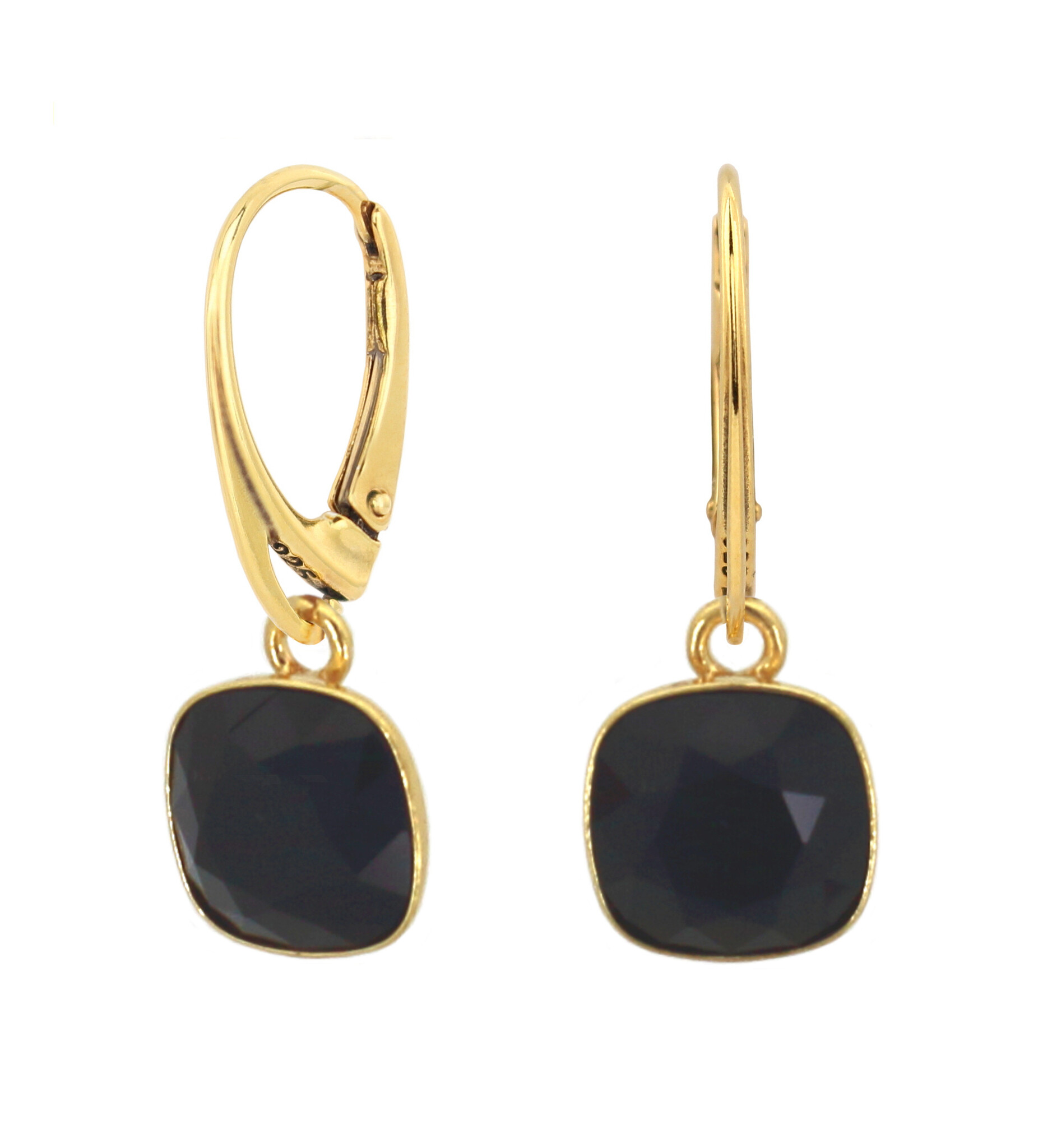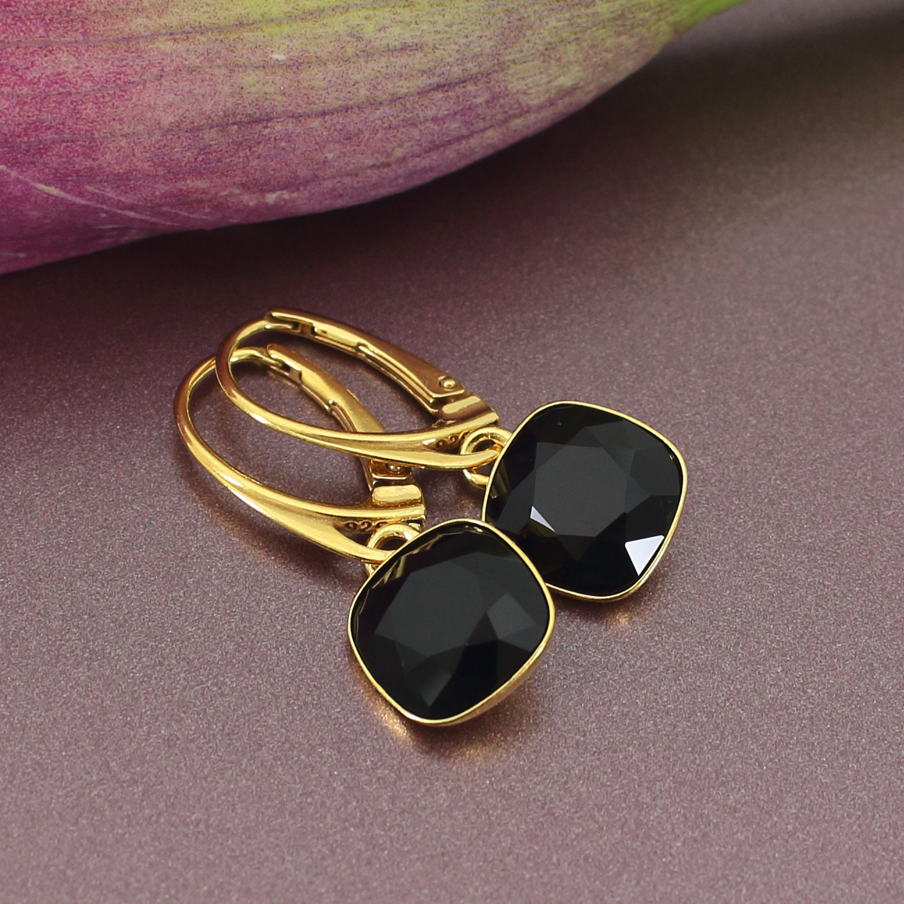 Elegante Ohrringe vergoldet mit Silberkern mit einem Anhänger mit einem wunderschönen schwarzen Swarovski-Kristall im Quadratschliff sind zeitlos und schick. Tragen Sie diese Ohrringe zur Arbeit oder eine Party. Swarovski Kristall hat eine diamantähnliche Wirkung, eine hochwertige Verarbeitung, eine funkelnde Optik und ist eine hervorragende und erschwingliche Alternative zu Diamanten.