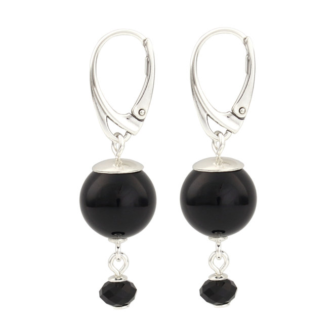 Exklusive handgefertigte Sterlingsilberohrringe mit einer großen schwarzen Swarovski-Kristallperle und einem funkelnden schwarzen Swarovski-Kristall. Mit diesen exklusiven funkelnden Ohrringen haben Sie einen fantastischen Eye-catcher. Kristallperlen von Swarovski werden mit einem Kristallkern hergestellt. Ihr unvergleichlicher harmonischer und wunderschöner Tiefenglanz wird durch eine einzigartige Beschichtung erreicht, die der Perle einen besonders schönen Glanz verleiht.