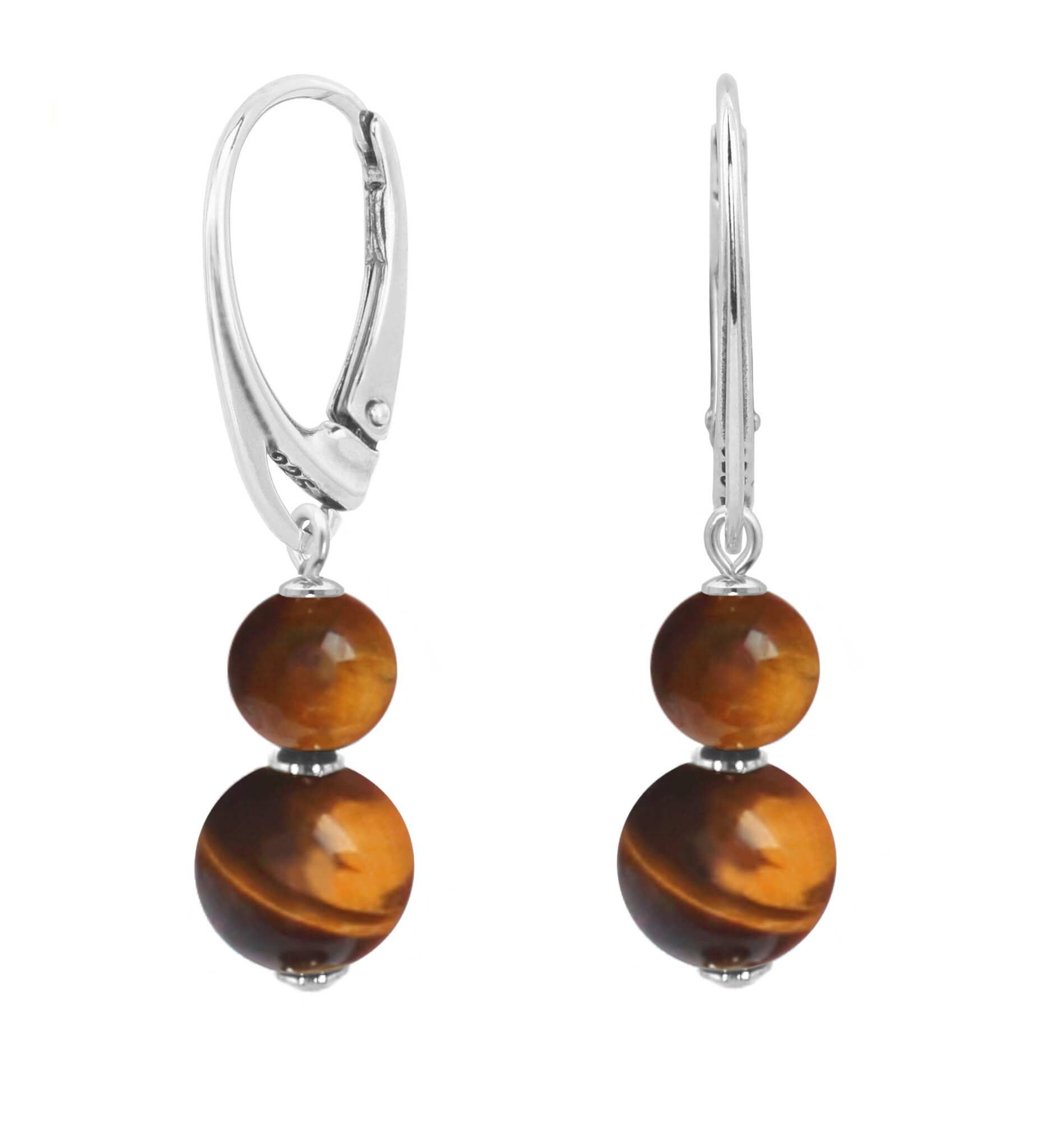 Handgemaakte unieke sterling zilveren oorbellen met een hanger gemaakt van prachtige glanzende tijgeroog kralen in verschillende maten. Tijgeroog is een edelsteen met een mooi kleureffect waardoor het sieraad makkelijk met modekleuren en stijlen te matchen is.